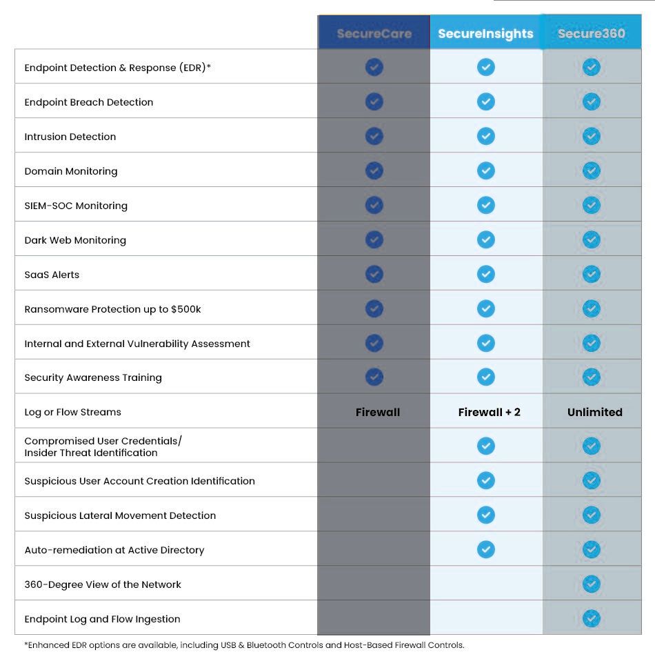 Meet regulatory requirements for GDPR, SOX, HIPAA, and PCI/DSS, and navigate complex cybersecurity insurance policies with expert help. Additional managed services include: